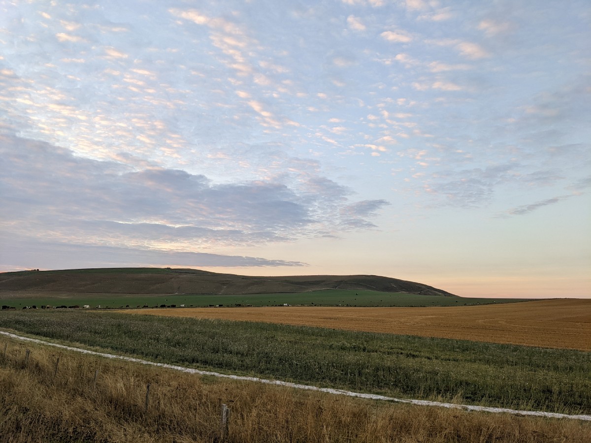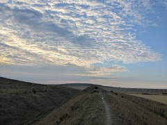 06:29:14 Lovely skies overhead on my walk this morning. | 06:33:39 | 06:33:43 I think there's a long barrow in the field over there. | 06:37:30 |