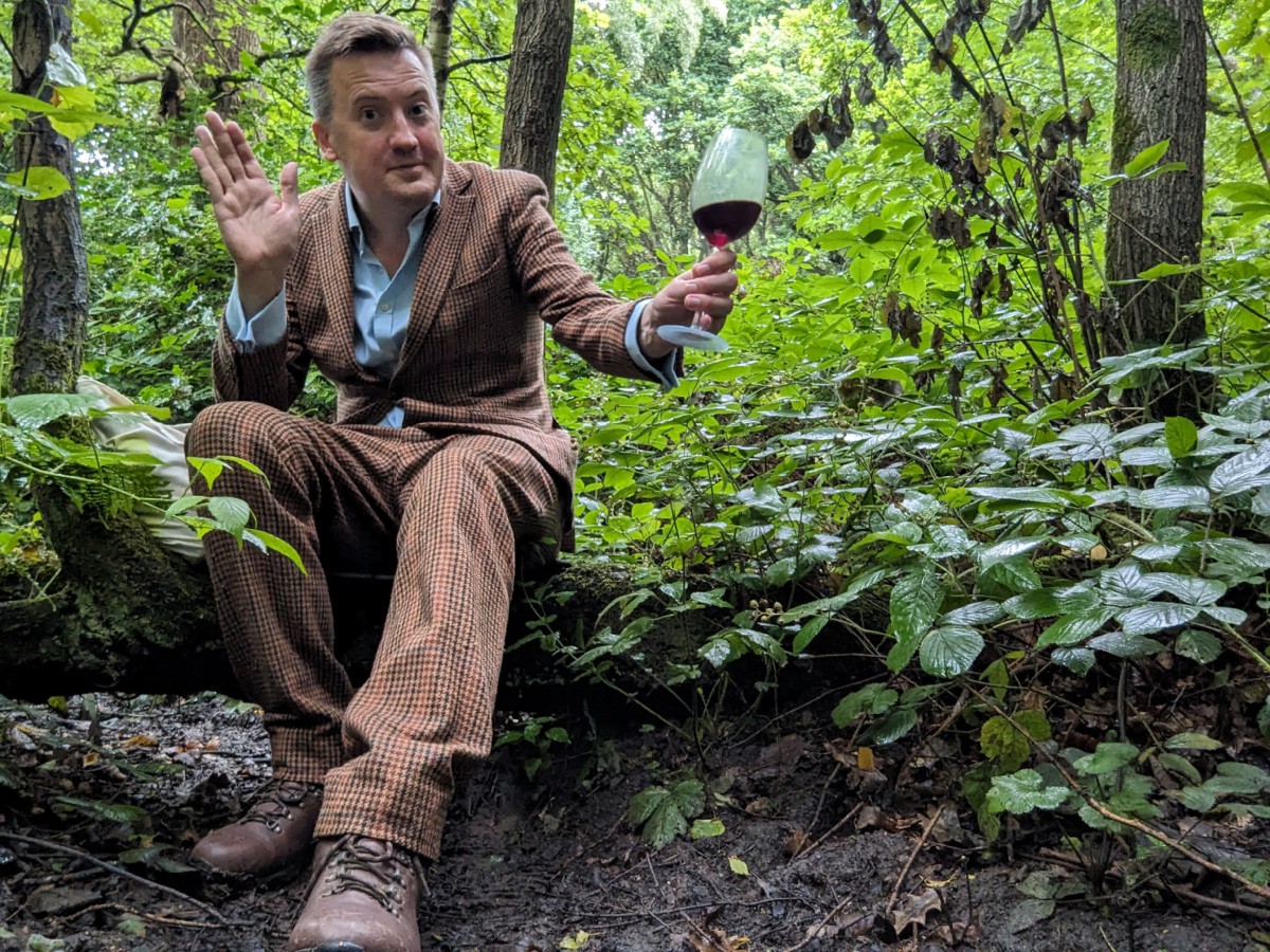 Me drinking some Burgundy in a ditch on Hampstead Heath.