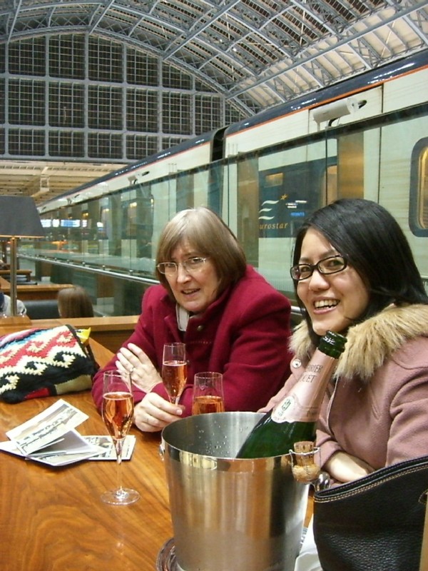 Mum and Chie at the St. Pancras champagne bar, which is pretty much on the platform!