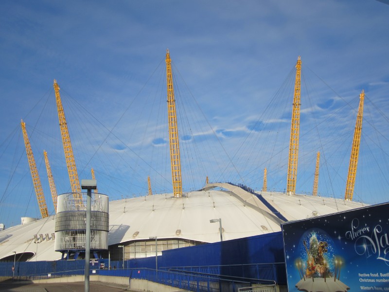 10:50:11 I bought a holly wreath this morning, so thought I'd take a picture of it as we were heading out. | 11:03:26 On the tube, I excitedly took a picture of this new section of the TFL network we'd be going on today. | 11:26:59 In North Greenwich tube station. | 11:27:46 Some shots of the Millenium Dome... |