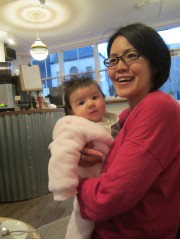 16:05:33 I liked the lamp shades in this cafe. | 16:05:53 Another picture of the interior of the cafe. | 16:13:04 Erika and Chie in the cafe. | 16:37:45 Sunset from Hackney Central station. |