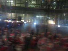 15:12:27 | 18:05:07 This is meant to be a picture of lots of rollerskating Santa Clauses but alas it was taken through the window of a moving bus and didn't really come out. | 18:36:52 Back t home, the first course of dinner. | 19:14:23 Erika whilst she was watching Paddington Bear on YouTube. |