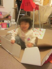 Erika playing in a box we received today.