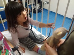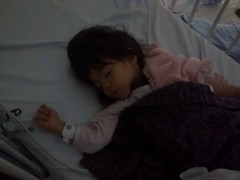 07:23:19 A stethoscope had been left by Erika's bed. I couldn't resist. | 08:41:44 Erika dozing in the morning. | 08:41:58 | 09:09:29 Erika trying on the stethoscope and looking a bit bedraggled having onlt just woken up. |