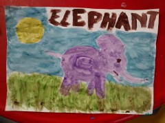14:08:45 Erika's reflection in a bauble. | 14:10:27 Erika decided to paint an elephant, and thought I'd have a go at the same time. | 18:00:29 Dr Erika diagnosing teddy. | 18:00:40 |