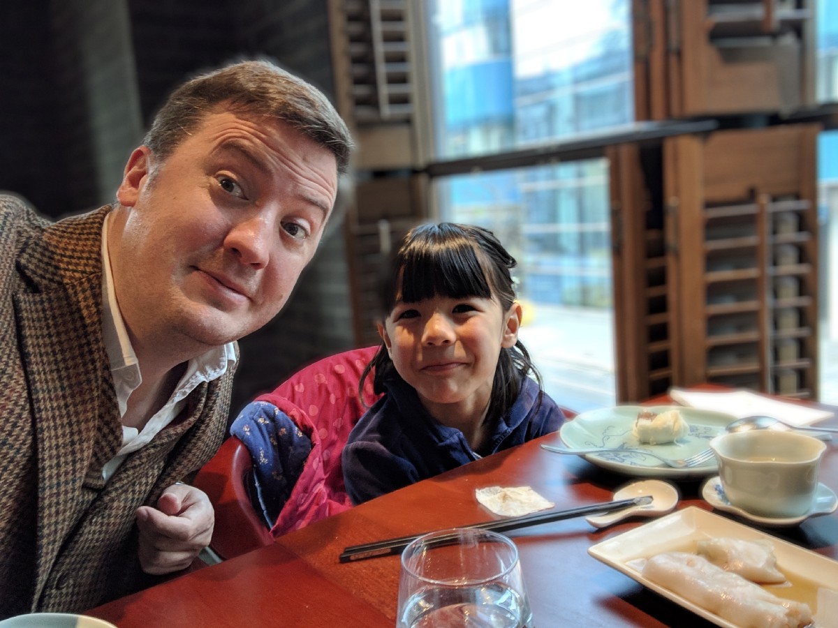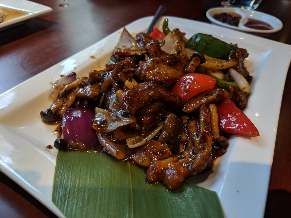 12:59:25 This mock duck in a black pepper sauce was probably the highlight of the meal. | 13:19:38 Me and Erika eating dessert. | 13:19:39 | 13:19:42 |