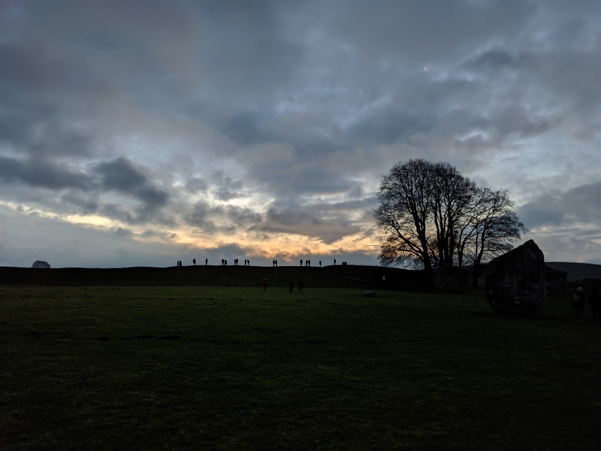 07:52:52 Lovely sky here. | 07:57:57 | 07:58:19 Presumably a couple of pagans/Wiccans there in the cloaks? | 07:58:39 Some of the assembled sunrise watchers. |