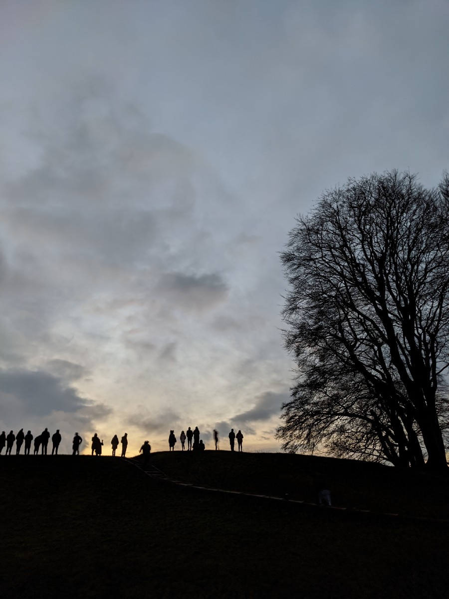 07:27:36 Finally some other people! A bit reassuring as I was starting to wonder if I might have come on the wrong day! | 07:27:44 Quite a dramatic change in the light levels from here on - finally you can see the green of the grass! | 07:28:16 ...although I was stil mostly using Night Sight on my phone so not sure the level of light / colour was exactly representative of what I was seeing myself. | 07:29:39 I really like the silhoettes of the people on the ridge in these pictures. |
