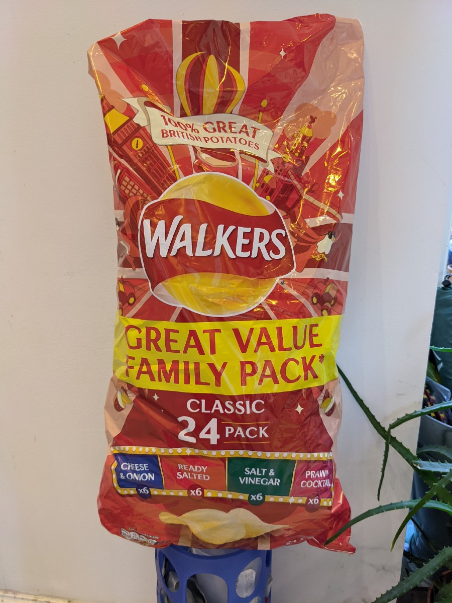 11:14:00 The bag the Tichard Outdoors Fire Trough came in. | 11:21:14 The assembled Fire Trough. It's very neat, and is designed to burn sticks, or fit Trangia spirits burners, and lets you cook two things at the same time. | 11:30:11 Also took delivery of a large bag of crisps this morning (oh and some other food from Amazon Fresh). | 14:29:56 The first of two wines I had with James, the chap I know from the Pineapple. Poynings Grange Blan de Blancs. I thought this was perhaps a bit green. |
