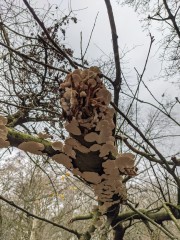 14:38:41 The barrow. It was a bit busy when I arrived so I decided to go for a bit of exploration in the woods instead. | 14:42:04 A fallen tree, which I think I've photographed before. | 14:46:50 A tree I had sat at the base of once before, and had previously offered a sense of being away from it all. Today though somehow there seemed to be more people around, and it didn't have quite the same feeling of isolation. | 15:11:01 So I wandered on. Interesting fungus here. |