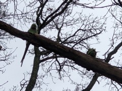 14:23:22 On arrival on the heath. A bit grey today. | 14:28:34 | 14:29:02 Video of some parakeets in this tree. | 14:29:12 Photos of the parakeets. |