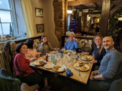 Day After (?) The Winter Solstice Thursday 22nd December 2022 The solstice is actually a single moment in time, rather than a whole day, which happened just before 10pm last night. I'd heard Stonehenge would be observing the solstice at dawn this morning, i.e. the end of the longest night, so assumed that would be the case at Avebury too. As it turned out not a huge amount seemed to be going on, probably not helped by the fact it was grey and damp around sunrise and there wasn't much to see. | Regency Cafe Friday 23rd December 2022 Chie was very keen to have a breakfast (albeit at lunchtime) at the Regency Cafe, and today was their last opening day of 2023, so we headed there in the daytime. | Christmas Eve - Brasserie Zedel Saturday 24th December 2022 Went for lunch at Brasserie Zedel, where we had originally booked for our wedding anniversary at the start of December, but had to postpone as Chie had been ill at the time. In the evening Erika constructed a gingerbread house and before bedtime set out the things for Santa. |
