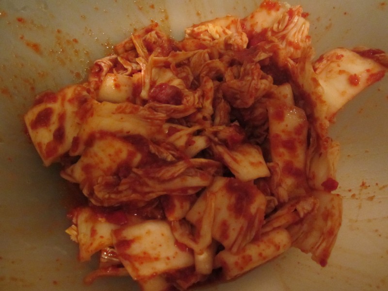 22:46:08 LAter on that night, after mixing the chili paste into the chinese leaf. | 22:46:18 ...and the daikon. |