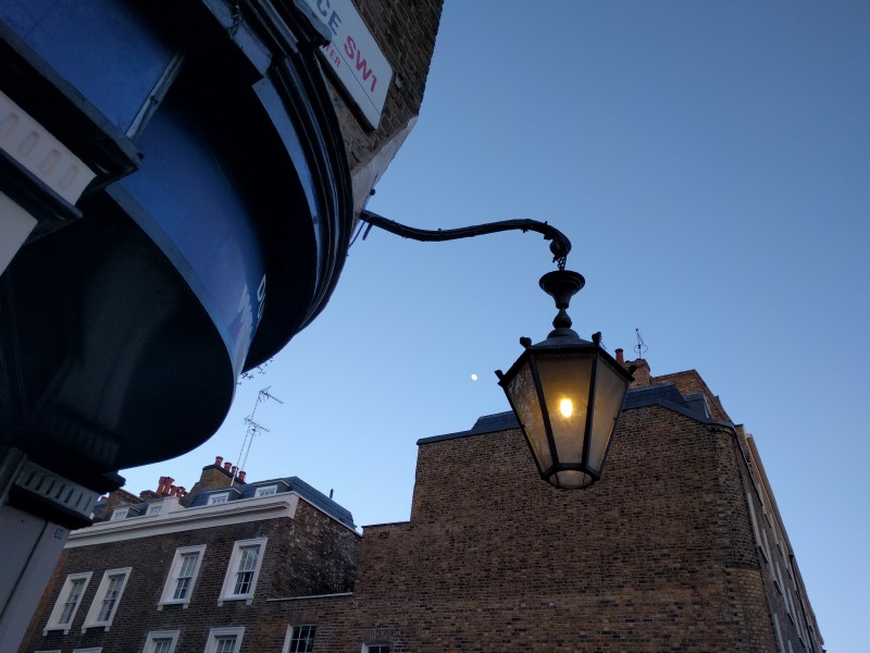 Picture of the moon as seen from outside the Duke of Wellington whilst having a quick pint after work.