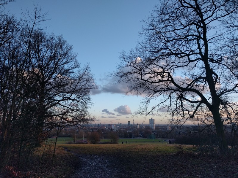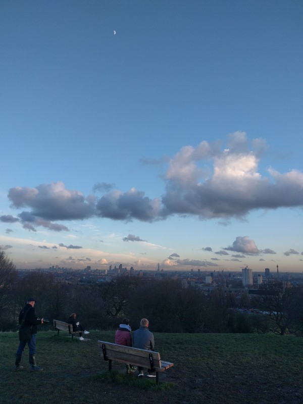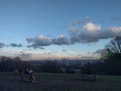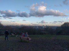 12:41:39 Erika and the pub cat in the Pineapple again. | 15:57:55 Rather glorious winter sun as I wandered up Parliament Hill. | 16:00:29 Views from near the top of Parliament Hill. | 16:01:44 I appreciated the emptiness of the skyline here. |