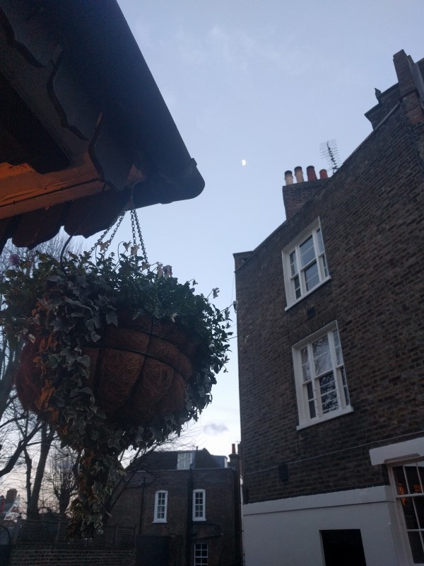 16:12:02 Hampstead Ponds. | 16:26:01 Picture of the Duke of Hamilton as I was passing. Not sure why I took this. | 16:34:13 At The Holly Bush now. | 16:58:09 Tried to get a shot of the moon. |