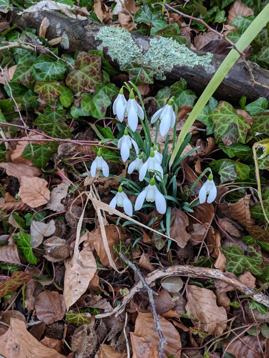 08:56:26 Where I started my walk, and where I finished the previous one - East Meon church. | 08:56:37 It looked very atmospheric in the mist. | 08:57:33 It would be lovely to see East Meon one day with blue skies! | 09:03:34 I was however treated to lots of snowdrops on today's walk. |