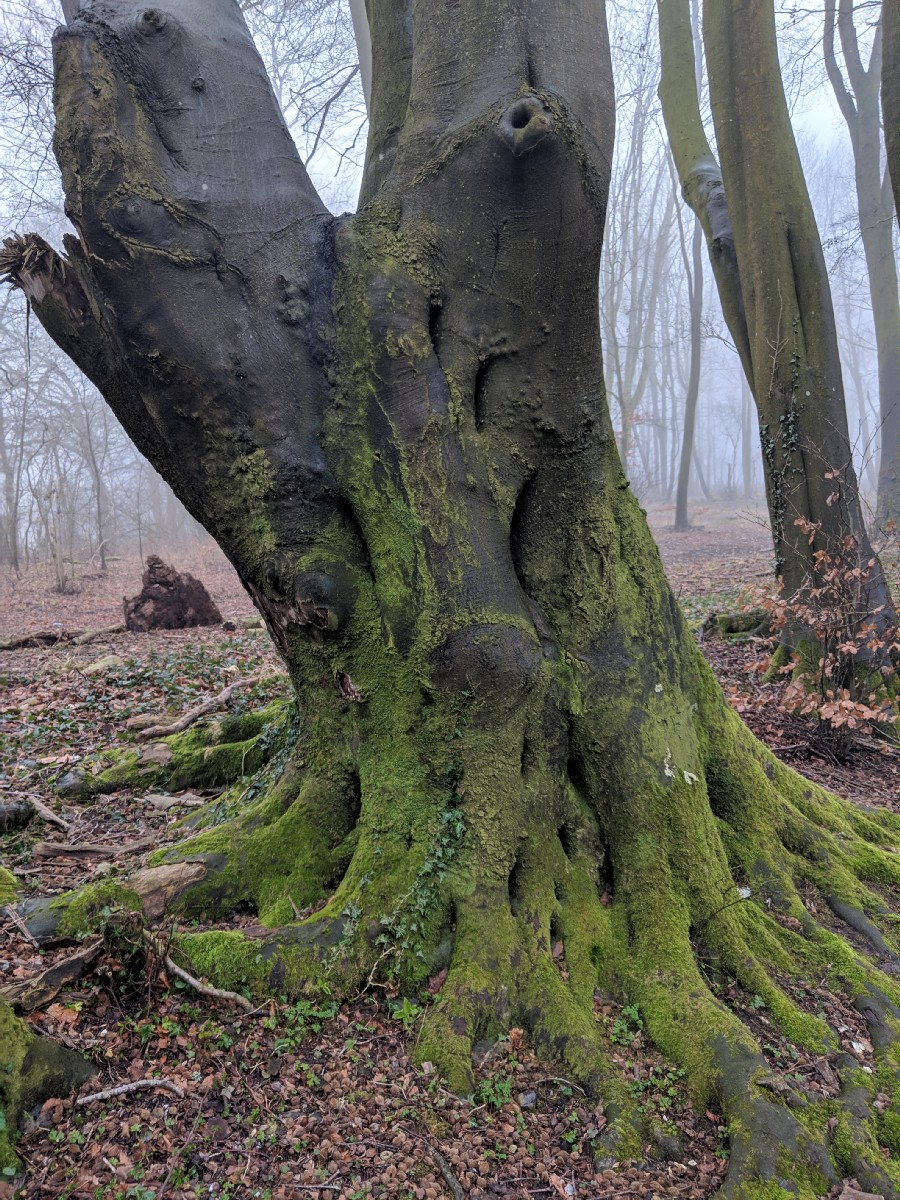 14:52:41 Crossing the A272 again next to Cheesefoot Head. | 15:13:58 Presumably heading into Chilcomb here, and for the first time I could see more than a few metres in front of me. | 15:14:25 More snowdrops around Chilcomb. | 15:18:30 A nice old treehouse around Chilcomb. |