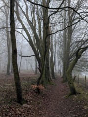09:03:37 Heading out of East Meon. | 09:05:47 Leaving East Meon. | 09:07:31 The track that led off the road into a misty expanse. | 09:14:06 It was a bit misty! |