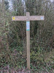 10:27:13 I thought I should record the state of my boots. | 10:31:08 | 10:34:05 Crossing over the old Meon Valley Railway. | 10:34:36 More reassuring signs, here it seems there was a "temporary off road route for walkers". |