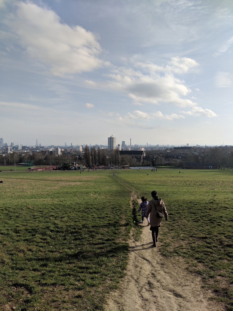 14:11:05 Nice display of flowers on the way to Hampstead Heath. | 14:19:15 Chie and Erika playing catch on Parliament Hill Fields. | 14:20:36 | 14:20:38 |