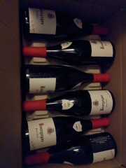 11:48:55 The case of Fourrier Bourgogne Rouge 2017 which arrived today. | 15:38:32 Close up on an individual bottle. | 16:00:34 On the way to the heath, some nice blossom. | 16:06:07 Pleasant skies over the heath today. |