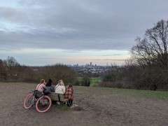17:09:00 | 17:09:10 Nice pink skies here. | 17:09:19 Zoomed in on Canary Wharf etc. | 17:10:43 Other people watching the sunset over London from the top of Parliament Hill. |