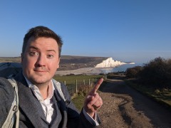 13:37:06 The view from the train - I think I was trying to catch the Crystal Palace transmitter. | 15:05:03 Iconic views of the Seven Sisters approaching from Seaford. | 15:05:10 | 15:09:05 I took lots of selfies here as I was trying to get a "thumbnail" for a YouTube video. |
