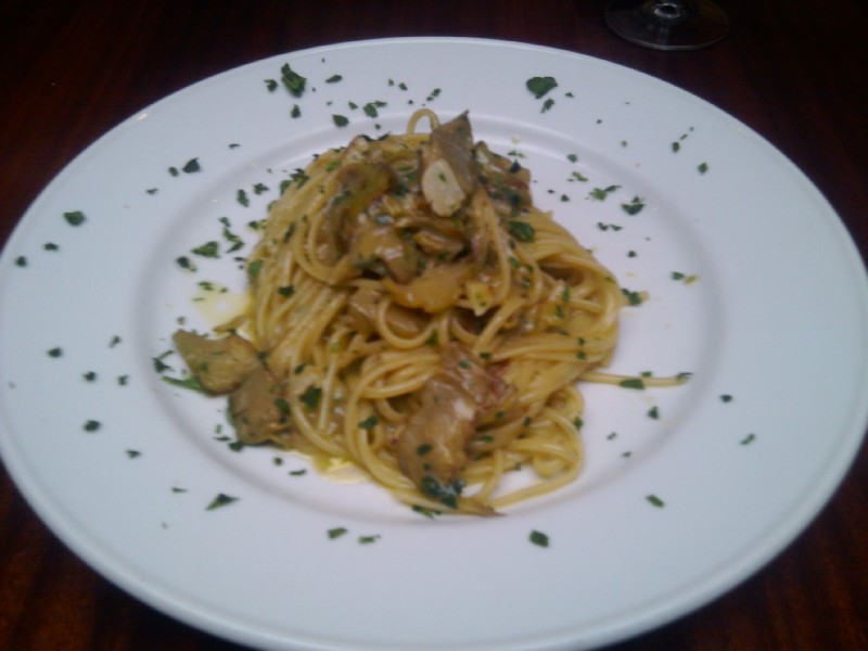 Lunch at Oliveto - bavettini ai carciofi (pasta with artichokes).