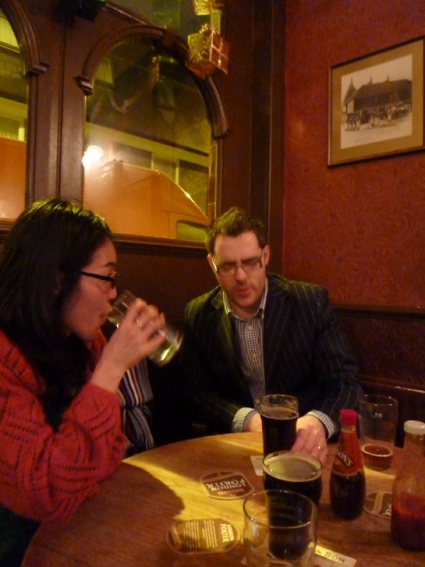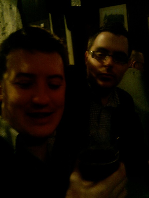 | 17:20:45 Same again. Probably should have used the flash. | 17:22:15 ...ah here's one of me, with the flash on. | 19:38:39 Later on at the Royal Oak, by which point we'd also met up with Chie - a few naff mobile pictures first... |