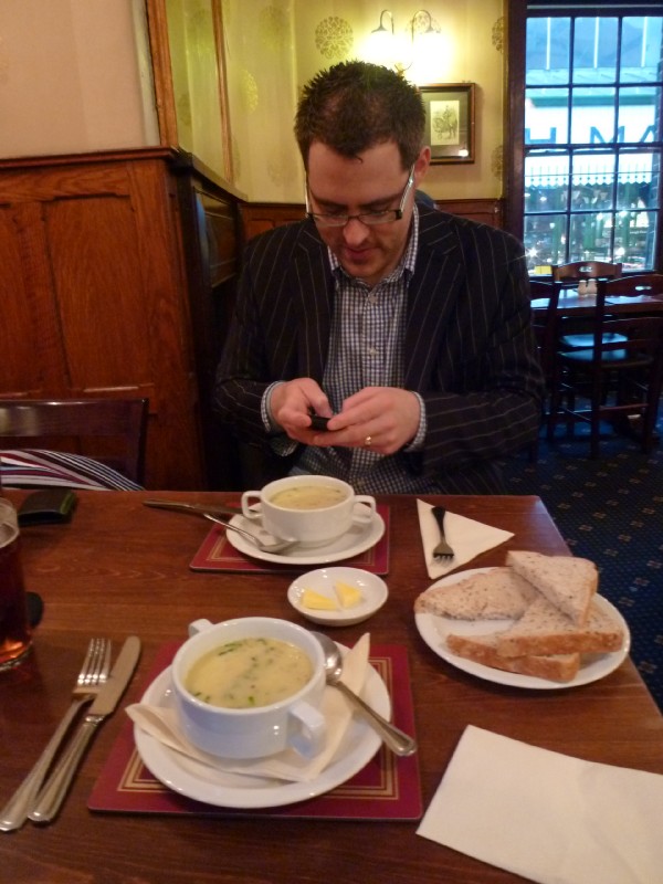 | 20:06:55 Had dinner here as well. | 20:34:04 Andy seems content with the food by the looks of things. | 20:34:28 ...there's some of the locals at the Royal Oak in shot too. |