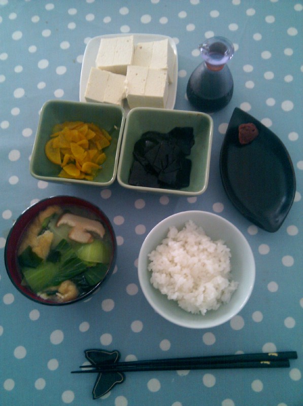 | 10:20:10 Traditional Japanese breakfast - rice, miso soup, tofu and pickles. | 10:20:32 I was keen to get a nice picture from just the right angle so took rather a lot of these... | 10:21:17 |