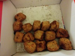 19:00:52 Popquorn Chicken from Pizza Gogo. Doesn't look that appetising, but as cheap junk food goes I'm not complaining. | 19:04:26 Pizza with Quorn peperoni. Again, as junk food goes... |
