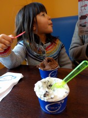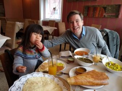 13:12:48 Lunch has arrived. The first time Erika has really eaten anything at an Indian restaurant, although it was mostly just the paper dosa. | 13:13:01 ...but at least that's one thing she likes in Indian food! | 13:45:00 An overcrowded bench. | 14:20:27 Post lunch ice cream at the branch of Oddono's in Hampstead. Not sure it was really the weather for ice cream but Erika seemed undeterred... |