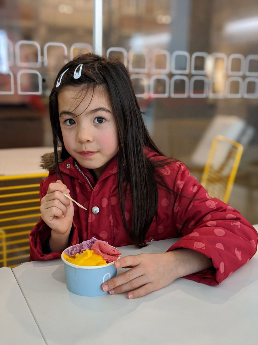 19:03:59 Chie and Erika in Oliveto. | 19:13:26 Olivogelo for dessert. | 19:13:58 Erika with her gelato in Olivogelo. |