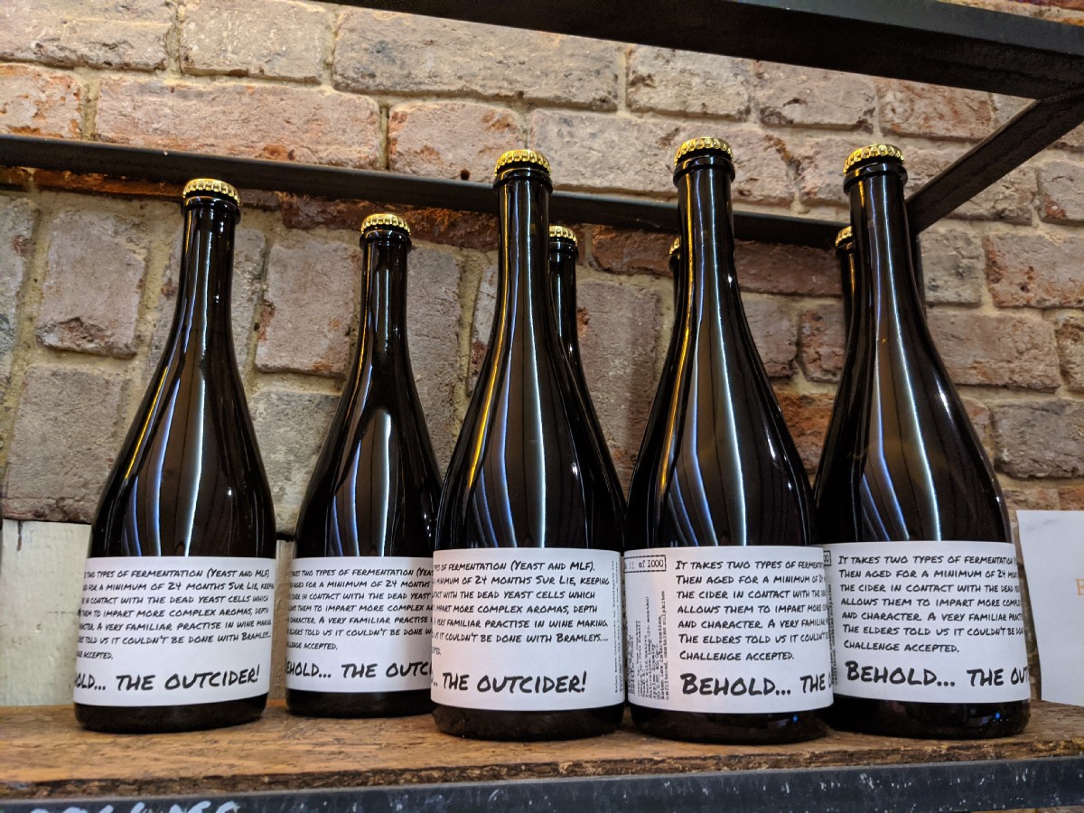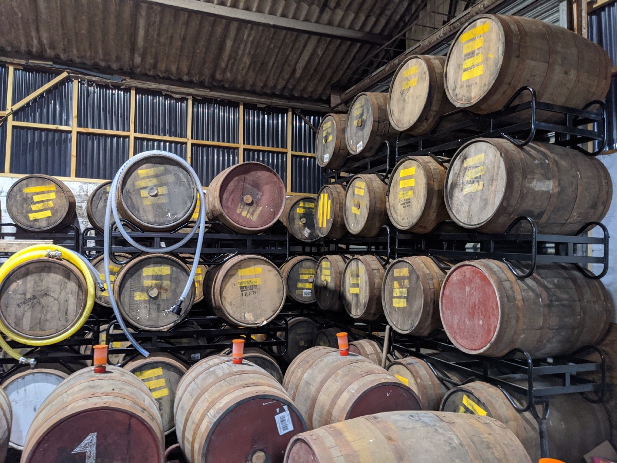 17:26:33 Some of the bottles on the shelves. | 17:26:36 | 17:30:44 Blurry picture of me outside drinking some cider. | 17:38:29 The cider barrels in the warehouse next door. |
