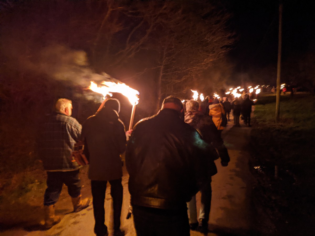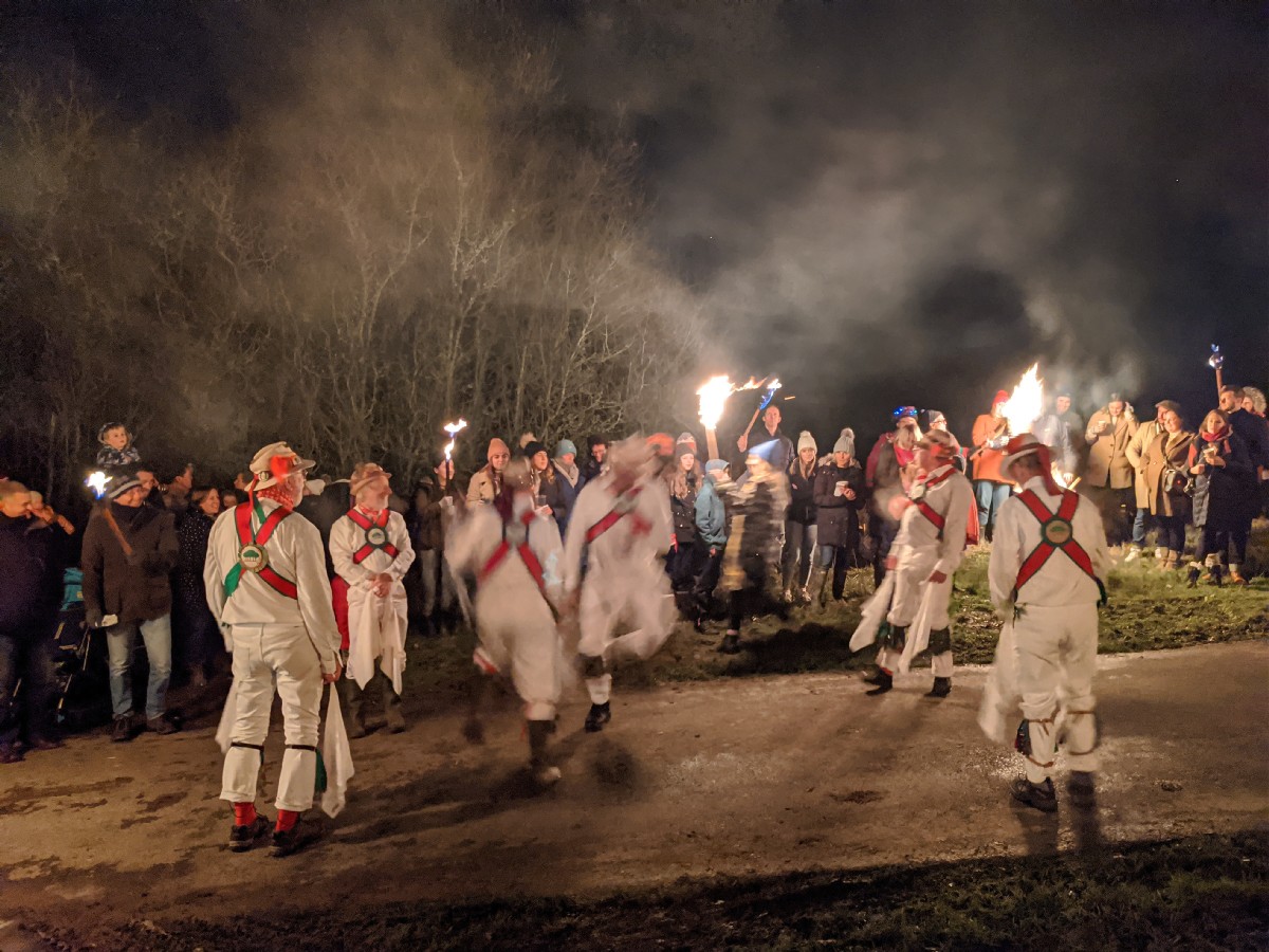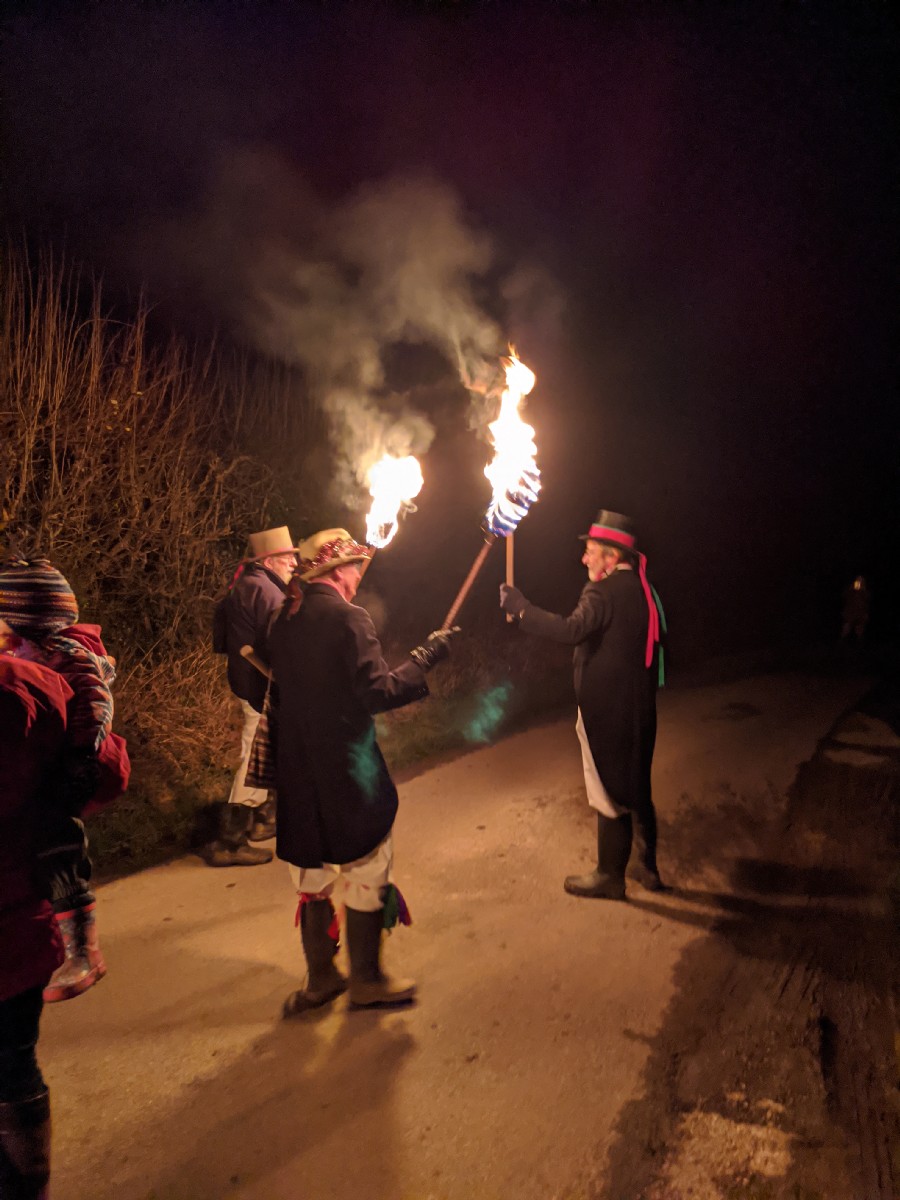 17:38:35 | 18:00:03 Start of the torchlit procession down the orchard led by the morris men. | 18:00:13 | 18:00:31 |