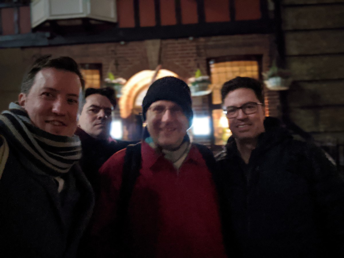 21:13:53 I thought his alleyway looked atmospheric. | 22:53:53 Blurry picture of the chaps at the end of the evening. |