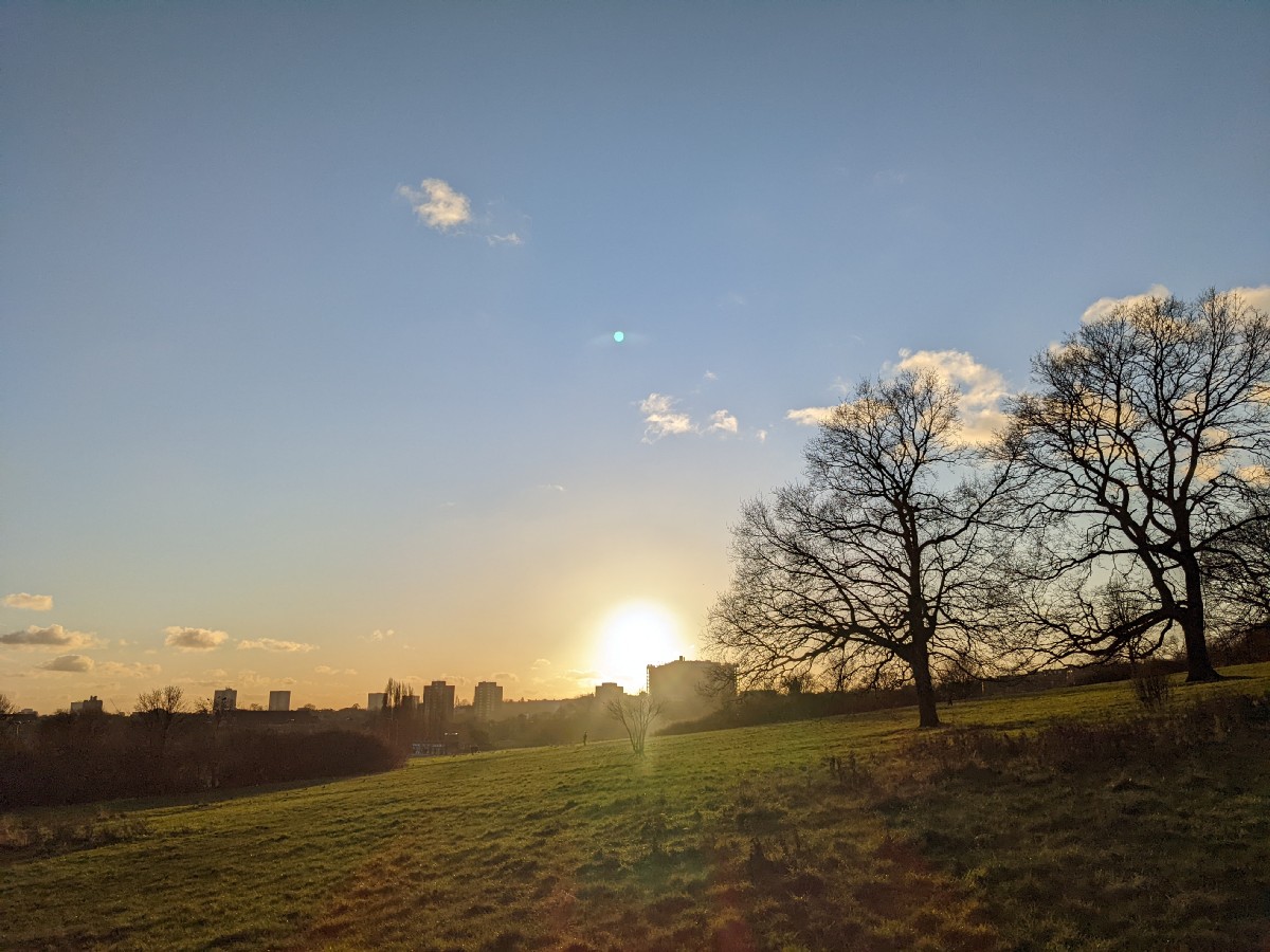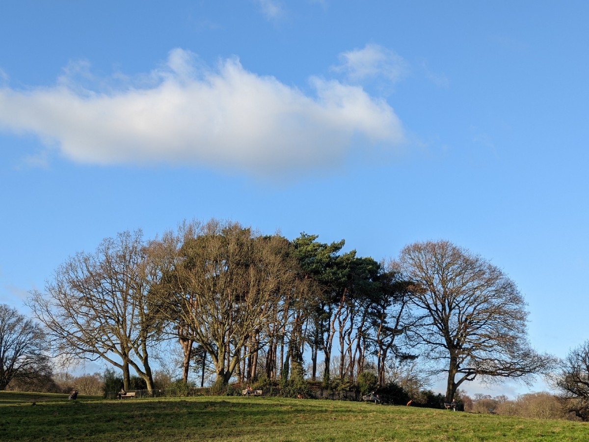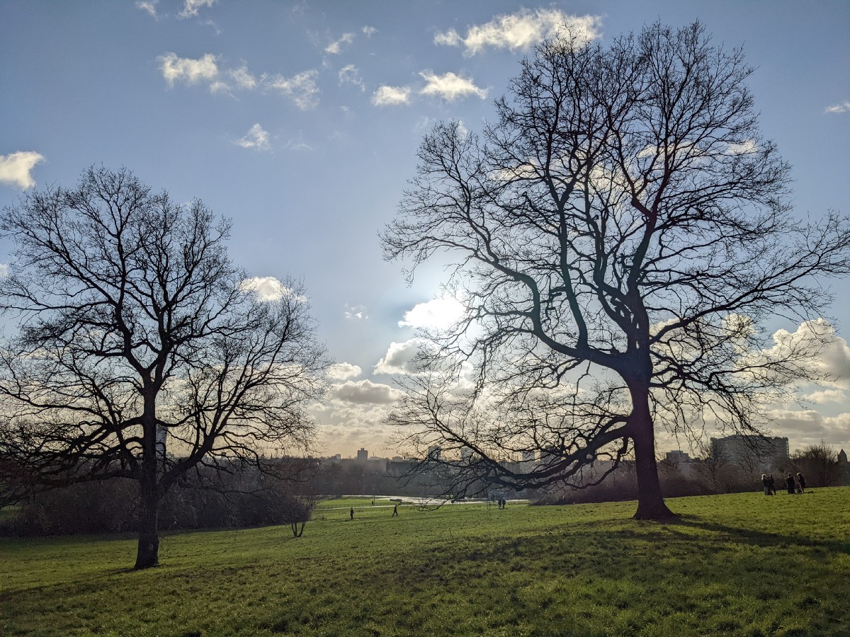 15:23:05 The view of the London skyline from part way up Parliament Hill. | 15:23:08 | 15:24:48 The bandstand. | 15:24:54 The sun shining through those trees again. |