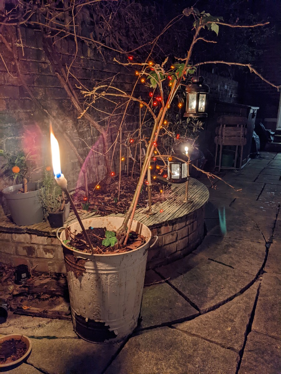 15:25:19 | 16:14:49 Erika at her ice skating lesson. In the background you can also see her teacher, coming over to tell me off, as apparently you're not allowed to take photos at these ice skating lessons. Thus this is the only photo I got. | 17:46:12 Back at home, setting up the apple tree for wassail. | 17:47:42 |