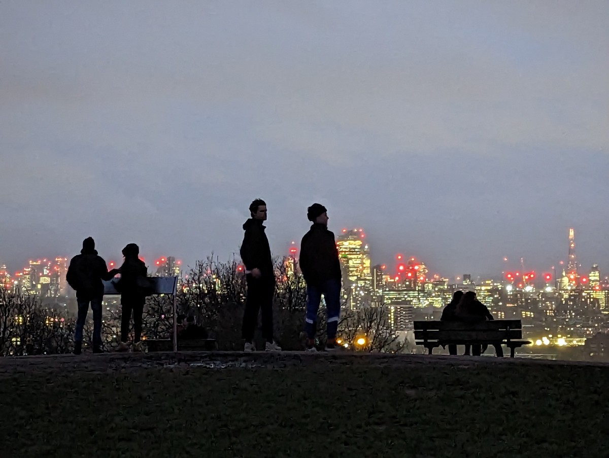 16:33:53 Oh maybe the sunset hadn't entirely passed? | 16:39:42 Some nice pinks and oranges. | 16:40:19 Night views of the London city skyline. | 16:40:56 I thought the silhouettes here would be nice, but it's actually all just a bit blurry. |