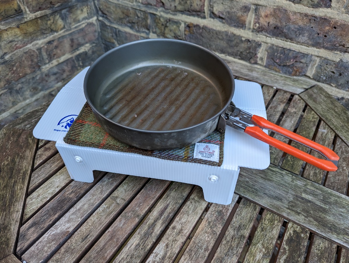 15:37:37 Testing it out with my camping frying pan and a little tweed / tartan pocket square I thought would make a nice tablecloth of sorts. | 15:39:25 The lone snowdrop in the garden. | 17:28:26 Also got some more BCB Firedragon fuel. | 18:09:00 ...and finally here's today's wine, some Louis Boillot 2014 Gevrey Chambertin "Les Evocelles". |