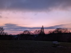 16:55:53 On arrival on the heath. The official moment of sunset today was apparently 16:35, so it had already passed by the time I got here, but there was still a bit of gloomy light left. | 16:59:14 Slihouettes atop Hampstead Heath. | 17:00:07 Looking towards the London skyline. | 17:00:19 |