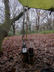 14:29:20 Every year like the complete mug I am I diligently take our Christmas tree down to the designated recycling point. Usually walking past several spots like this where people have just dumped them on a street corner. | 15:28:25 Wine under a tarp on the heath. | 17:03:32 Looking pretty gloomy atop Parliament Hill after sunset. |