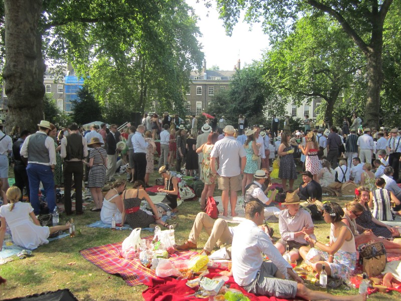 14:27:51 | 15:25:12 I've never seen it so busy! | 15:26:20 The Fortnum and Mason hamper I brought along (mainly to carry Erika's things) made for a handy cocktail table. | 15:32:59 A musical interlude between sporting events. |