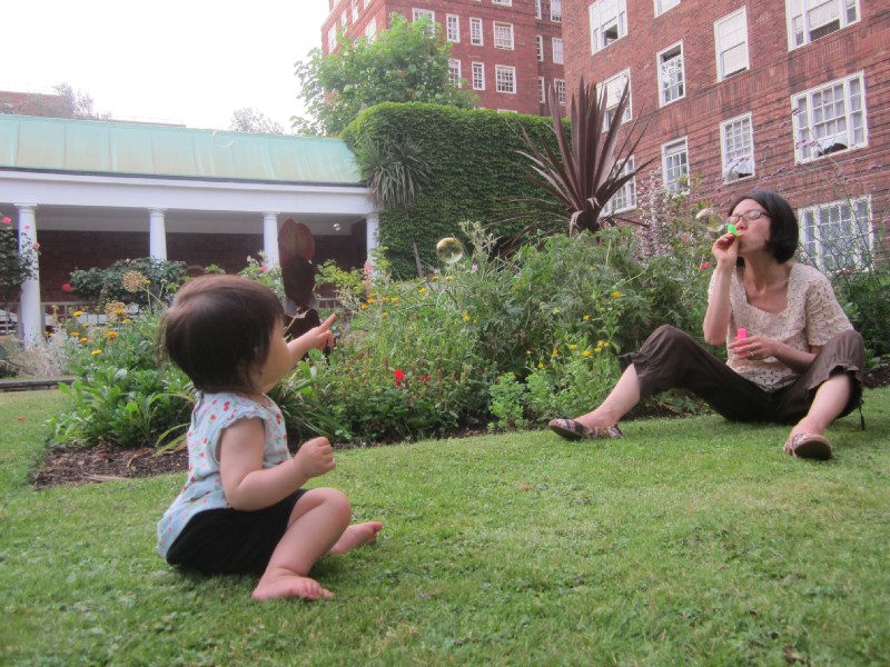 13:00:02 Erika in the waiting room of Chie's dentist. | 19:40:31 An Oxford Negroni. | 20:23:12 Chie blowing bubbles to entertain Erika out in the garden. | 20:23:42 |