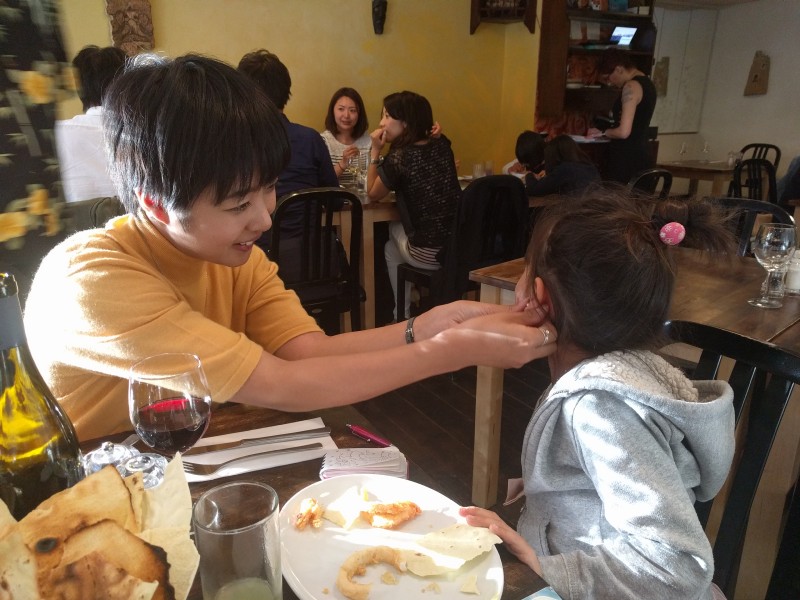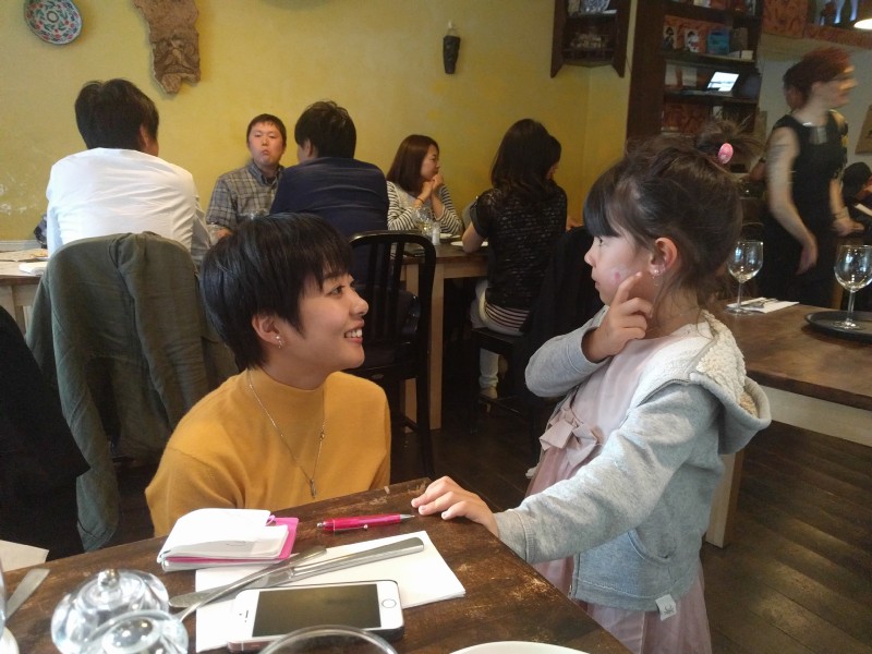 11:57:59 | 19:26:49 At dinner in the evening, one of Chie's friends from Hiroshimakenjinkai letting Erika try on her earrings. | 19:26:56 Erika looked very pleased. | 19:27:57 The table of Hiroshimakenjinkai people. |