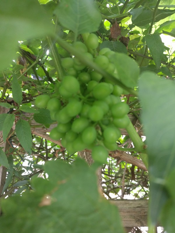 09:12:30 I had recently bought this book, the UK Vineyards Guide. | 14:14:37 Also bought this wine thermometer. It didn't really work. | 14:41:52 The sole bunch of grapes in my own "vineyard" | 14:42:04 The verbena doing well. |