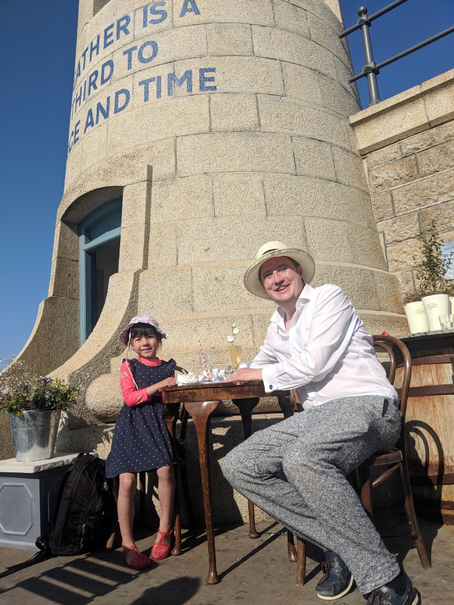 17:11:11 | 17:13:51 Inside the Lighthouse Champagne Bar. I ordered a glass of Terlingham, the local ESW. | 17:17:20 Outside the Champagne Bar. | 17:17:41 Not very flattering picture of me in this ridiculous but necessary hat! |