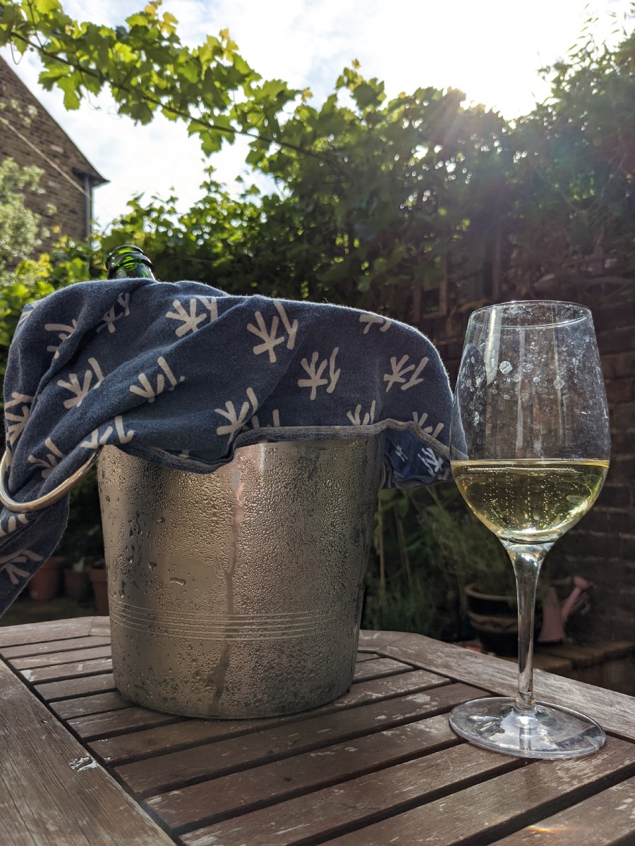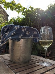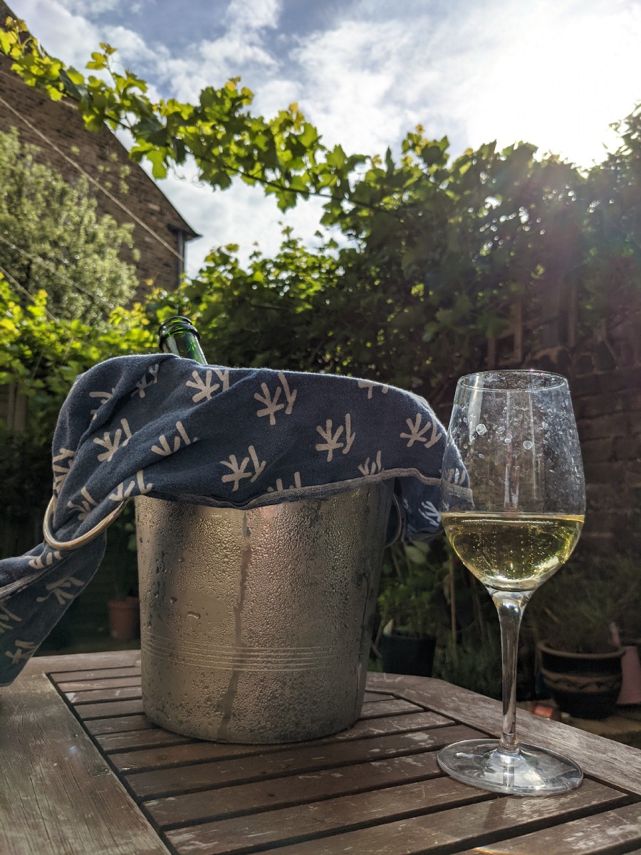 16:04:19 My friend Christian, who currently lives in New York, very kindly sent a couple of masks made by a tailor there. | 16:57:15 Jenkyn Place Blanc de Blancs, another ESW from the Vineyards of Hampshire case. | 16:57:23 | 17:10:04 Bottle shots out in the garden. |